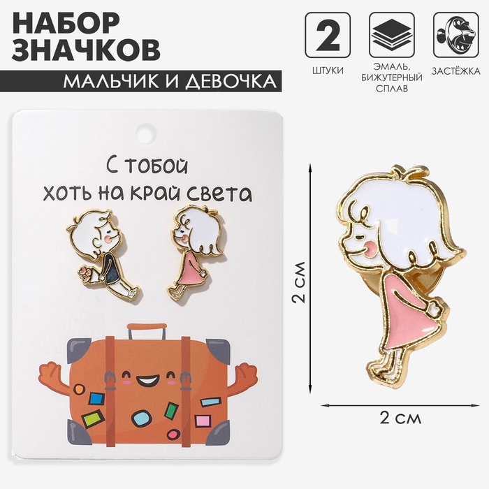 Набор значков (2 шт.) «Мальчик и девочка», цветной в золоте