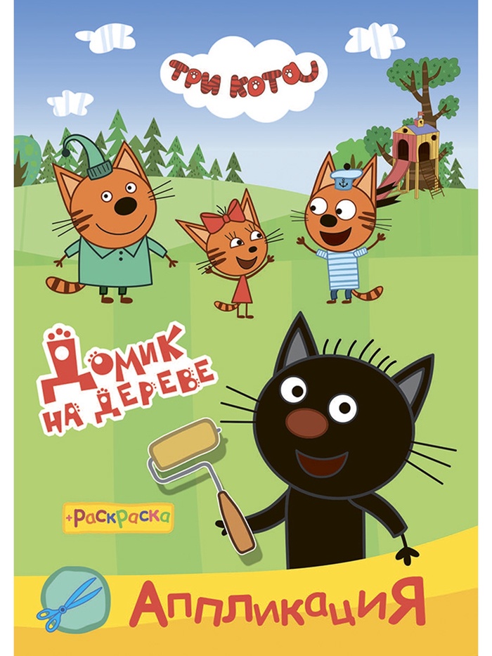 Аппликации с раскрасками «Три кота. Домик на дереве», А5, 14 стр.