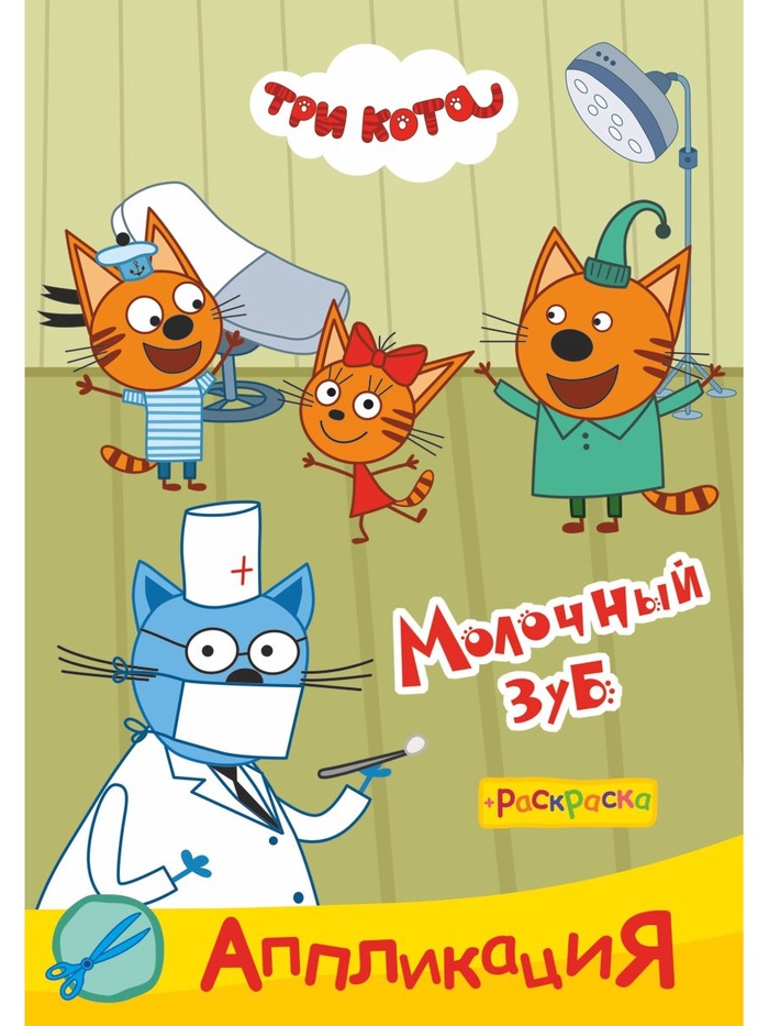 Книга - аппликация «Три кота. Игра в доктора», А5, 14 стр.