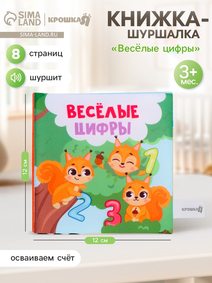 Книжка-шуршалка Крошка Я «Веселые цифры», 12×12 см
