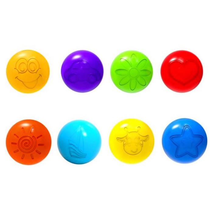 Яркие разноцветные шарики для сухого бассейна добавят в детские игры больше позитива, веселья и азарта! На каждом элементе прорисована картинка: машинка, жирафик, солнышко, цветочек, сердечко, кораблик, улыбка или звёздочка. Шарики выполнены в сочных глянцевых красках, они отлично развивают у малышей восприятие цвета.