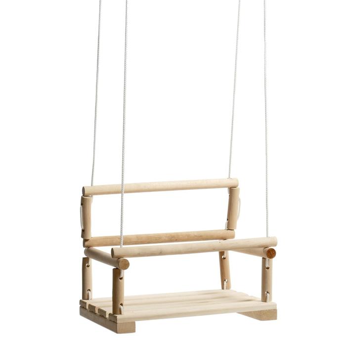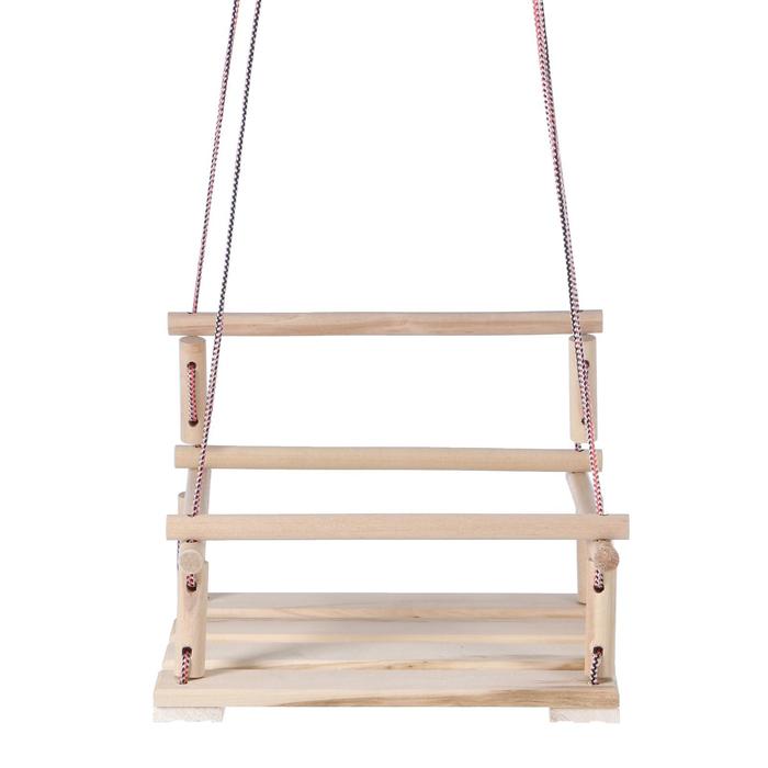 - Изделие выполнено из липы, которая обладает уникальным свойством перенимать температуру тела — даже если качели находятся на улице под прямыми солнечными лучами, ваш ребёнок не обожжётся.