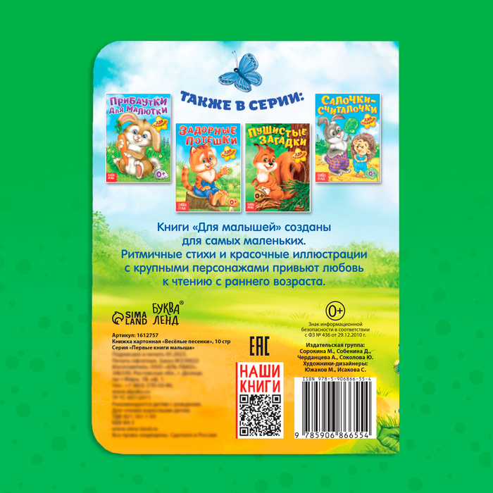 Книжка-картонка «Весёлые песенки» — это не просто сборник песенок, а источник радости и вдохновения для самых маленьких. Подарите ребёнку возможность учиться и играть с удовольствием!