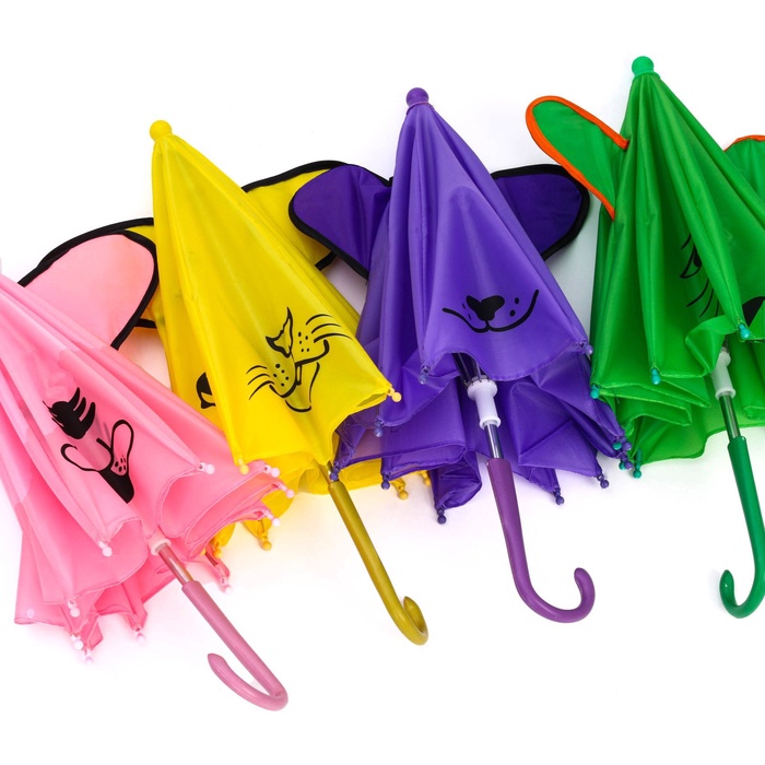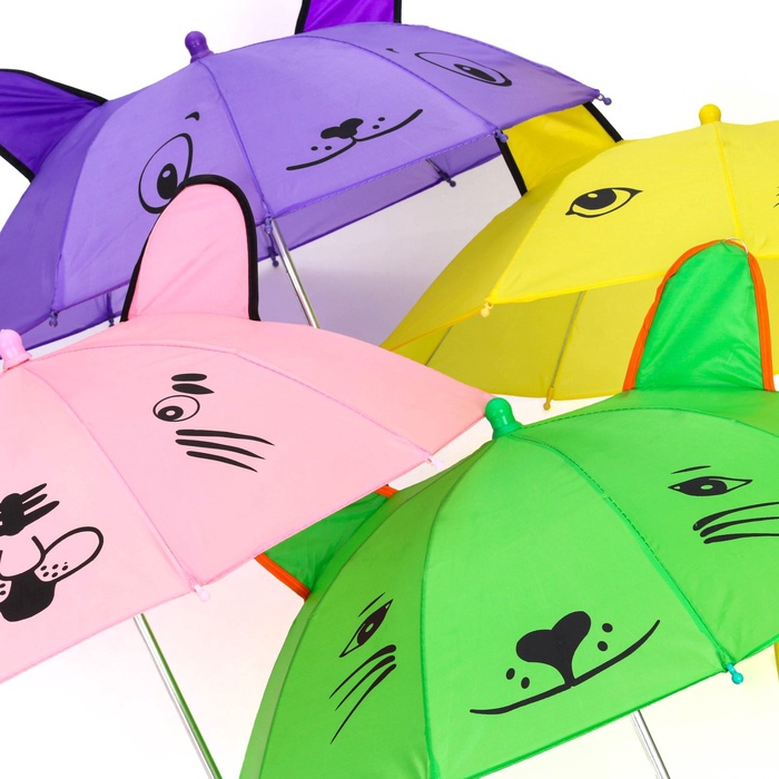 Зонт детский механический «Животные», r — 24 см, с ушками, цвет МИКС