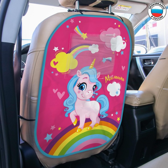 Яркий чехол ТМ «Крошка Я» сохранит в чистоте переднее сиденье автомобиля. Используйте это специальное приспособление, чтобы малыш не запачкал ботиночками спинку кресла.