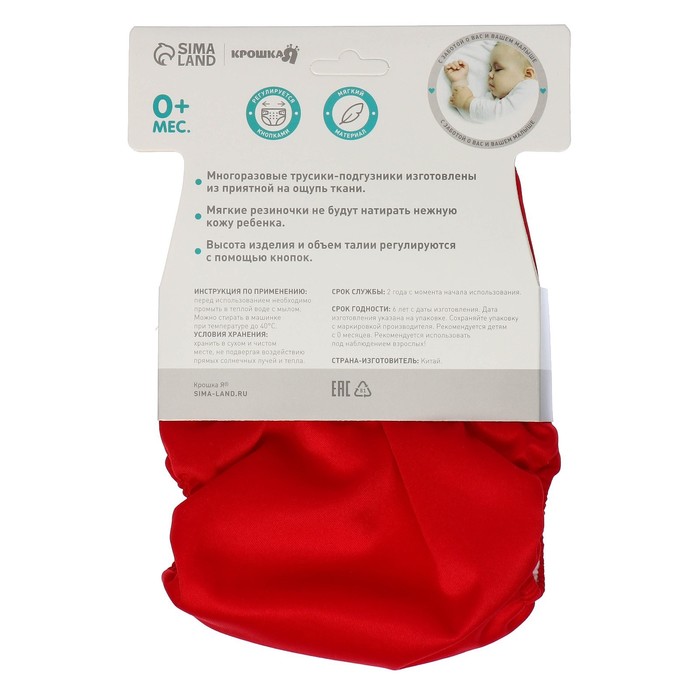 Многоразовый подгузник, 3-8 кг, красный, Крошка Я