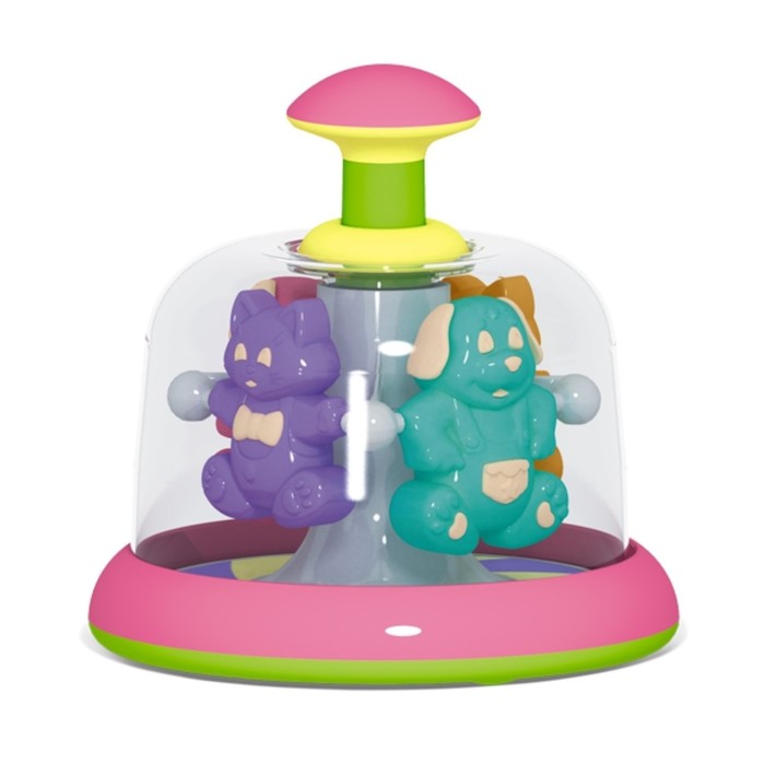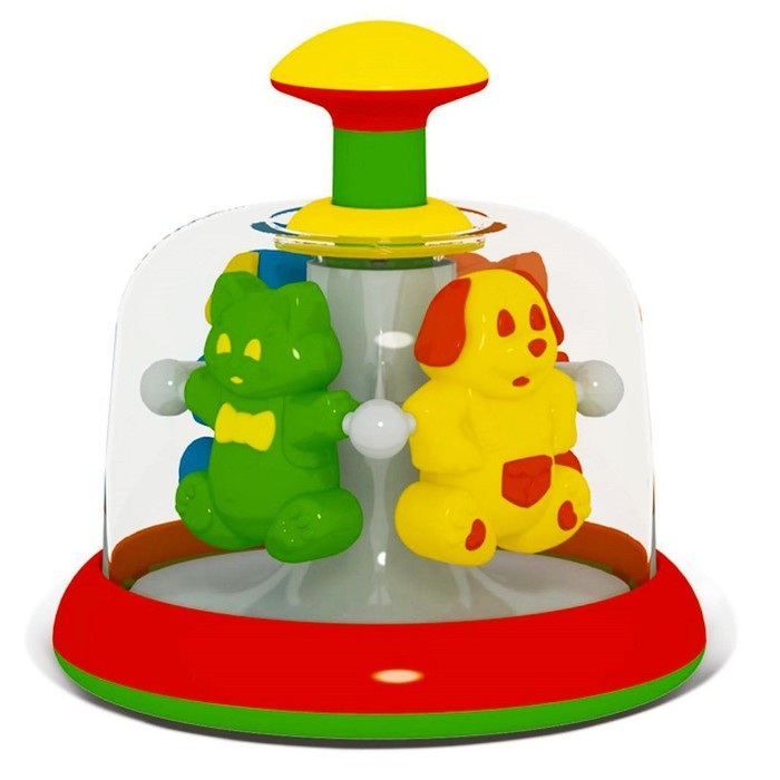 Юла-карусель «Домашние любимцы» — это удивительная игрушка, способная развлечь малыша. Лёгким нажатием на рукоятку малыш сможет запустить её, и под прозрачным куполом начнут вращаться и издавать звуки разноцветные фигурки.