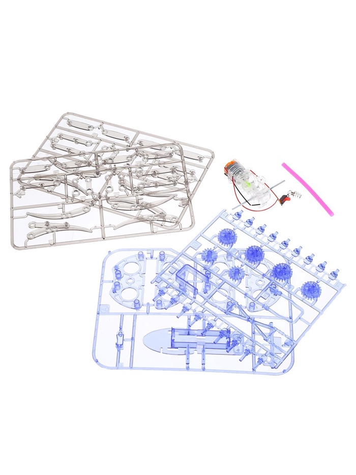 Чтобы собрать робота, ребёнку необходимо точно следовать инструкции, соединить детали, закрутить провода вокруг клемм и собрать шестерёнки.
