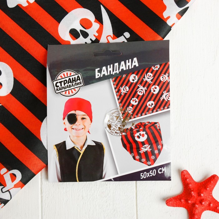 Бандана «Настоящий пират», 50×50 см — одна из самых универсальных деталей гардероба. Используйте её как карнавальный аксессуар или для повседневного образа. Бандану можно надеть на шею, запястье или украсить ею рюкзак. Повязанная на лицо вещь прекрасно защитит дыхательные органы от пыли. Такой платок станет незаменимой деталью при занятиях спортом. И, конечно, он отлично выполнит свою основную функцию: оградит голову от солнечных лучей.