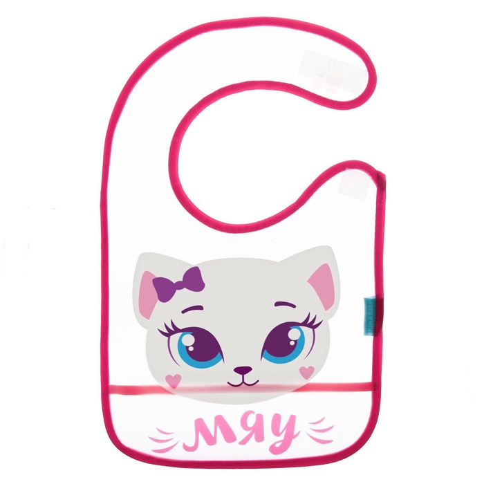 Нагрудник для кормления M&B «Котёнок» непромокаемый на липучке, с карманом, МИКС
