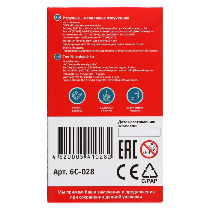 Неваляшка в художественной упаковке