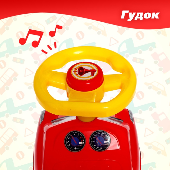 Скорость и азарт в твоих руках! Толокар «Молния» – это яркая красная машинка, которая превратит каждую прогулку в захватывающую гонку. Звуковые эффекты и удобный поворотный руль делают её идеальным выбором для мальчиков, которые любят скорость и приключения.