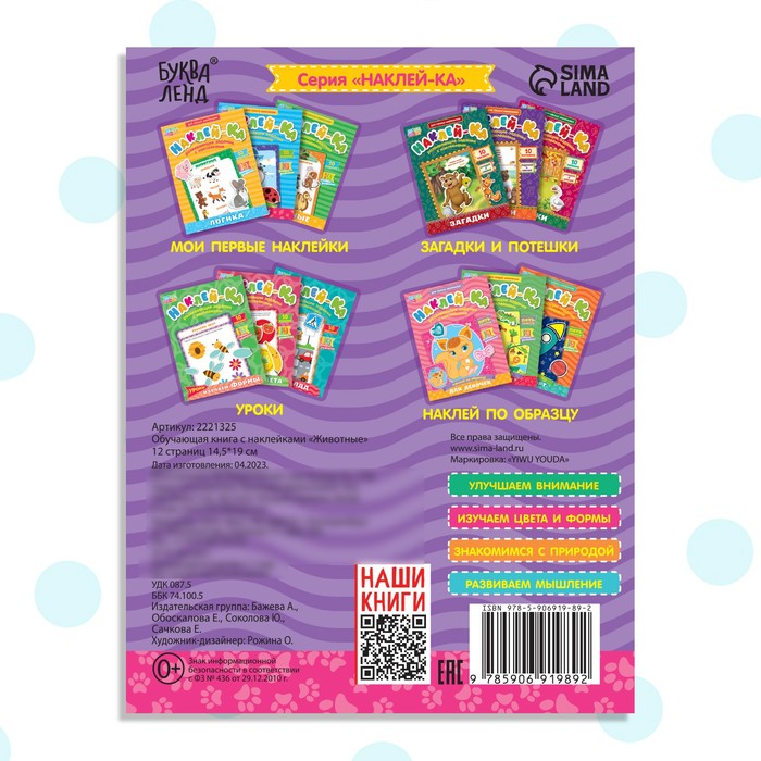Обучающая книжка с наклейками познакомит малыша с животными, а также поможет развить воображение и творческие способности.