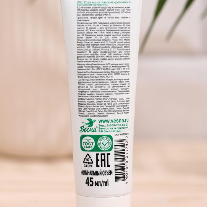 Крем детский - натуральный, безопасный продукт для детей с первых дней жизни по доступной цене. Обогащен экстрактом календулы, который обладает противовоспалительным, укрепляющим и смягчающим действием. Эффективен при решении специфических проблем кожи (высыпания, покраснения, шелушения). Имеет гипоаллергенный состав и подходит для применения с первых дней жизни.