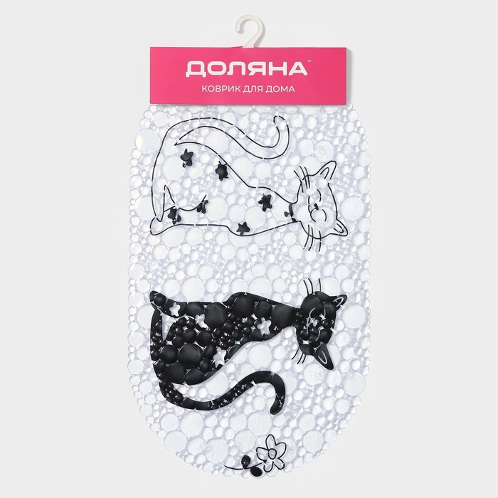 Коврик противоскользящий в ванну на присосках Доляна «Кошечки», 38×67.5 см, цвет белый