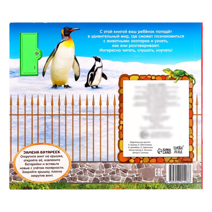С этой книгой ребёнок попадёт в удивительный мир, где познакомится с животными зоопарка и узнает, как они разговаривают.