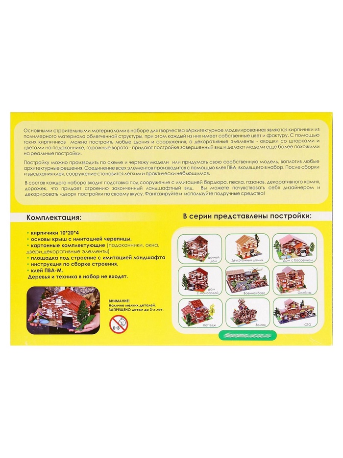 Конструктор для творческого строительства — набор миниатюрных кирпичиков, идеально подходящий для создания архитектурных моделей и собственных проектов. Детали выполнены из легкого полимерного материала, напоминающего камень. Конструктор дает возможность возводить масштабные и детализированные строения, которые легко собираются и также легко изменяются, что позволяет воплощать самые разные задумки и архитектурные решения.