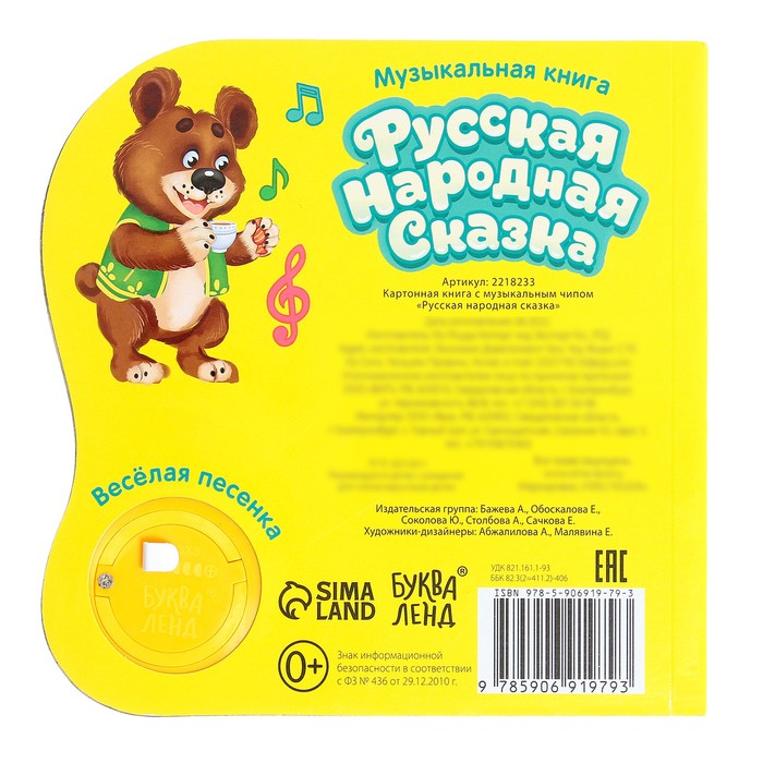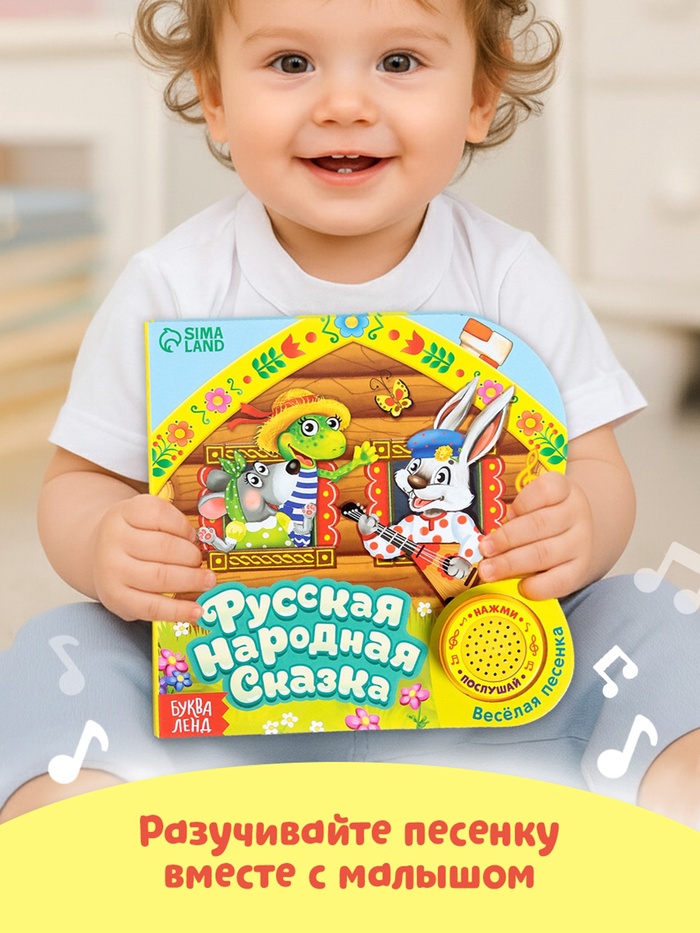 С музыкальной книгой «Русская народная сказка» малыш познакомится с народным творчеством. На страничках издания вы найдёте знакомую сказку «Теремок», а ещё послушаете весёлую песенку.