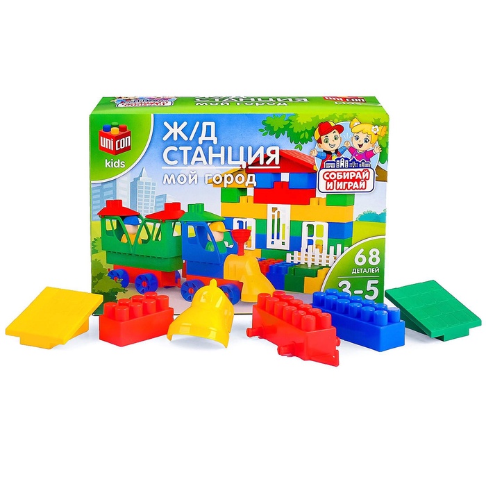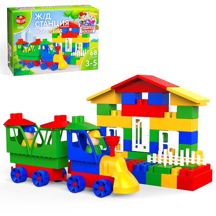 Конструктор пластиковый «Железнодорожная станция», 68 деталей