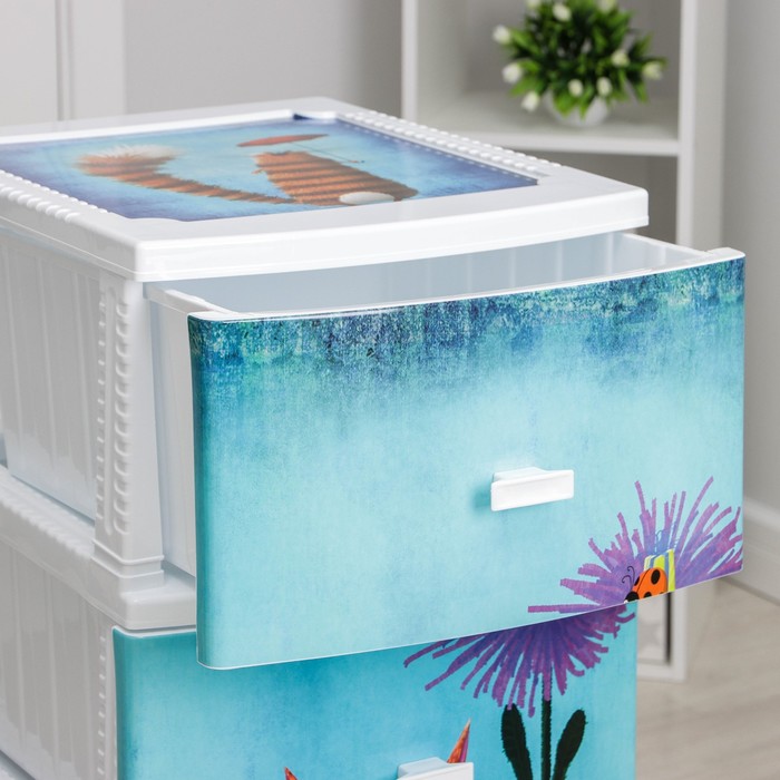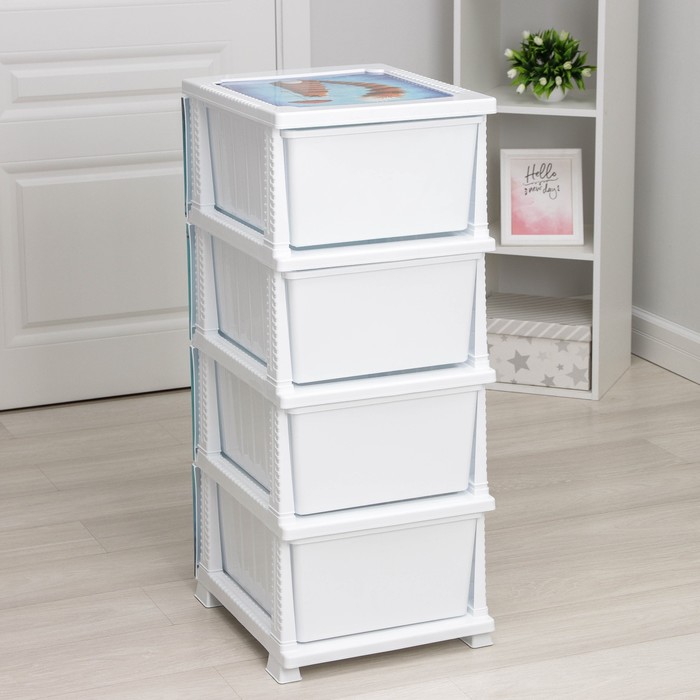 Комод 4-х секционный «Декор. Кот», 38.5×47×95 см, белый