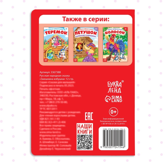 Книга «Заюшкина избушка» — это дверь в мир русских народных сказок для самых маленьких. Яркие иллюстрации и простой текст помогут малышу познакомиться с героями и их поучительной историей. Книга станет первым шагом в мир чтения, развивая воображение и прививая любовь к книгам с раннего возраста.