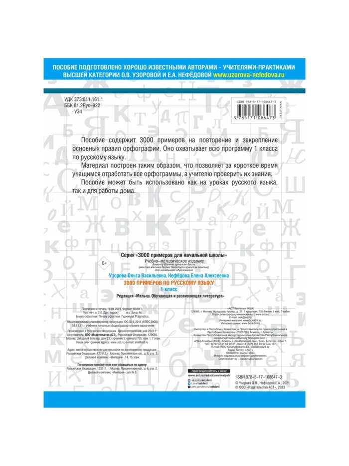 Тренажёр «3000 примеров для русского языка» — это эффективный инструмент для закрепления базовых правил орфографии в первом классе. Благодаря чётко структурированным заданиям, ученики смогут быстро освоить все основные орфограммы, а учителя и родители легко проверят их знания. Это пособие станет надёжным помощником как на уроках, так и при самостоятельных занятиях дома.