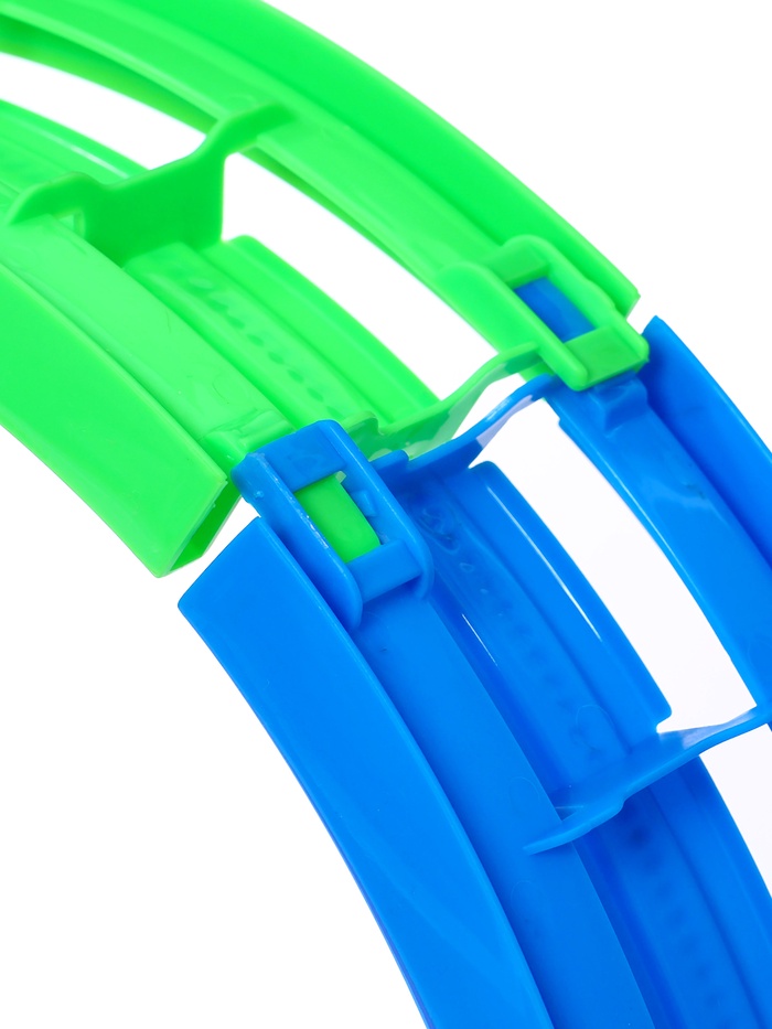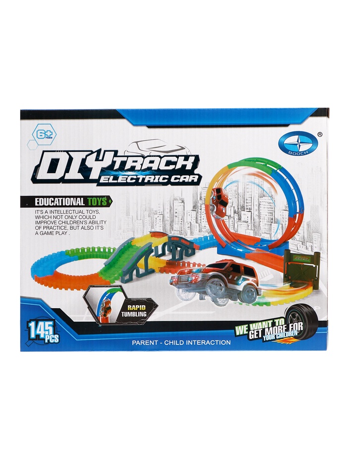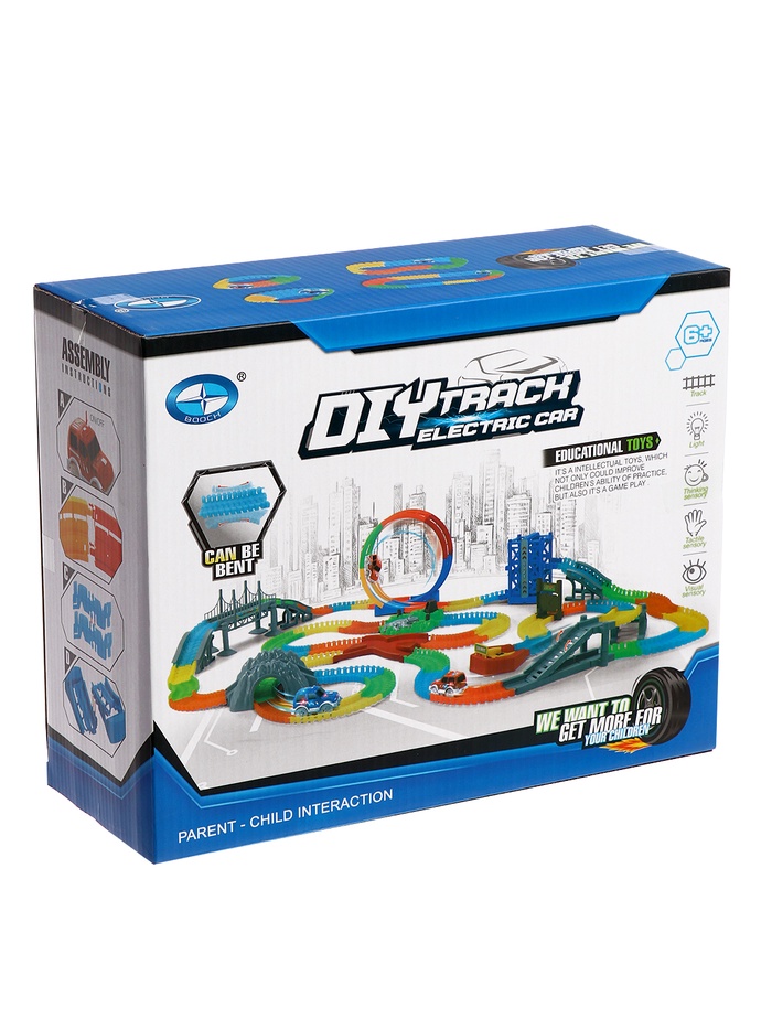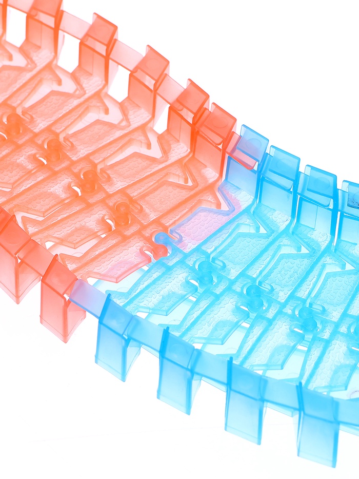 «Магический трек» — это набор для зрелищных заездов. Ребёнка удивит то, что дорогу можно собрать не просто так, чтобы она поворачивала и петляла в разные стороны, но также сделать выпуклой или вогнутой или вообще закольцевать, заставив машинку ехать внутри неё.