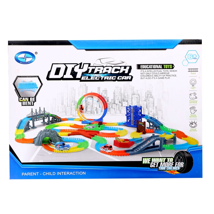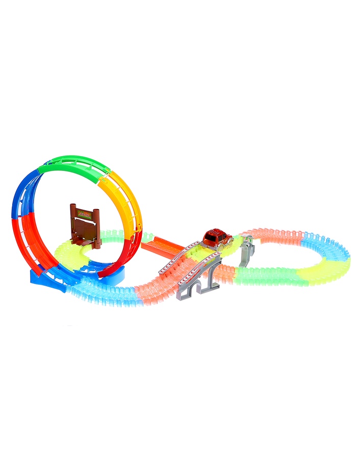 Автотрек «Магический Трек», гибкий, светится в темноте, 132/145 детали, мёртвая петля, МИКС