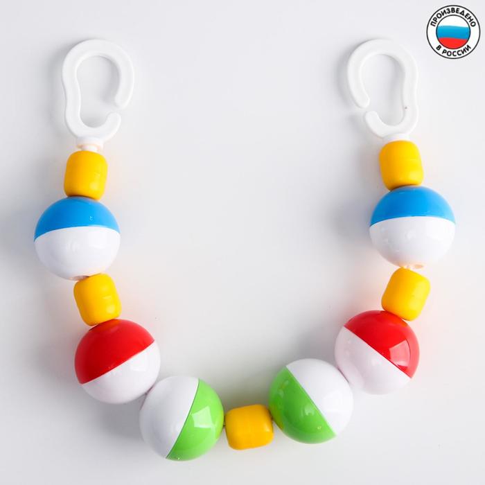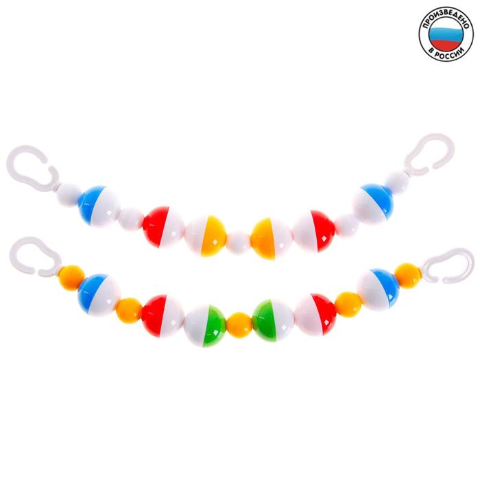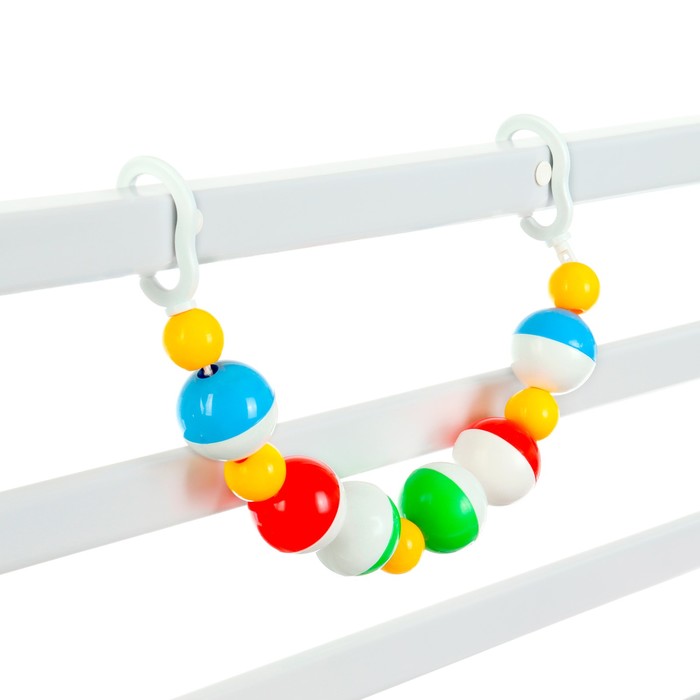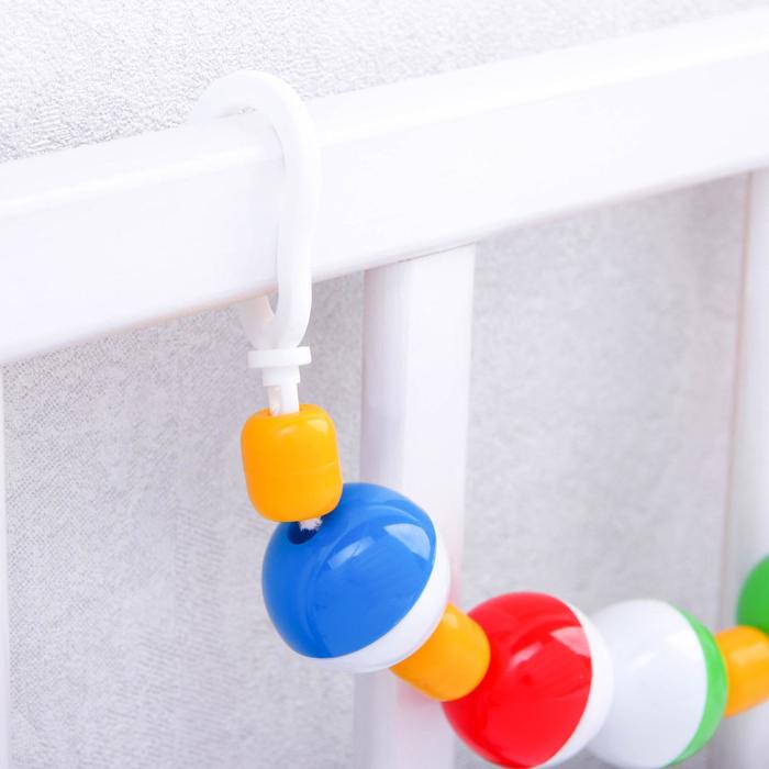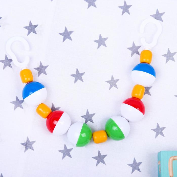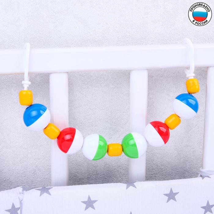 Растяжка на коляску или кроватку это яркая подвеска для малыша, которая помогает занять ребёнка дома и на прогулке. Разноцветные элементы хорошо привлекают внимание, малышу интересно их рассматривать и тянуться ручками. Растяжка легко крепится по краям и аккуратно располагается на бортиках кроватки или на коляске.
