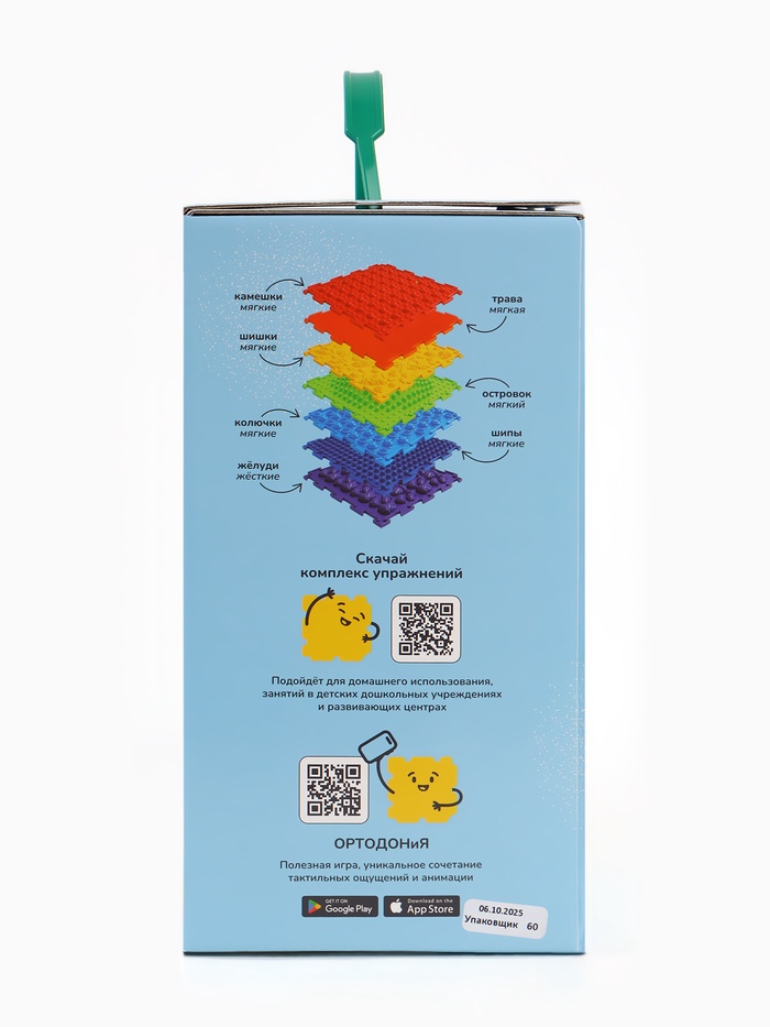 Ортопедическое напольное покрытие состоит из отдельных модулей, которые соединяются между собой по принципу пазла. По массажному коврику можно ходить или выполнять упражнения, стоя на нём. Во время занятий стимулируются рецепторы на стопе и формируются её физиологические своды. Изделие применяется для профилактики плоскостопия у детей, массажа стоп и снятия усталости ног.