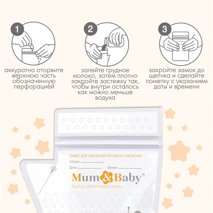 Пакеты для хранения и заморозки грудного молока M&B, 200 мл., набор 25 шт.