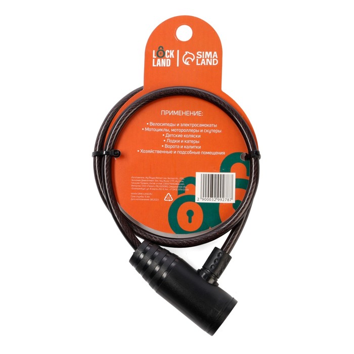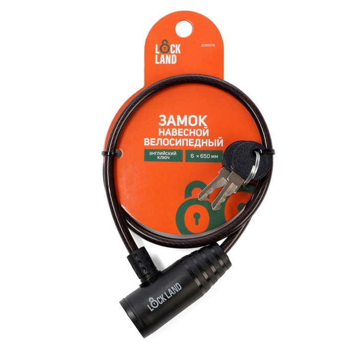 Замок навесной велосипедный LOCKLAND, 6×650 мм, английский ключ с пластиковой ручкой