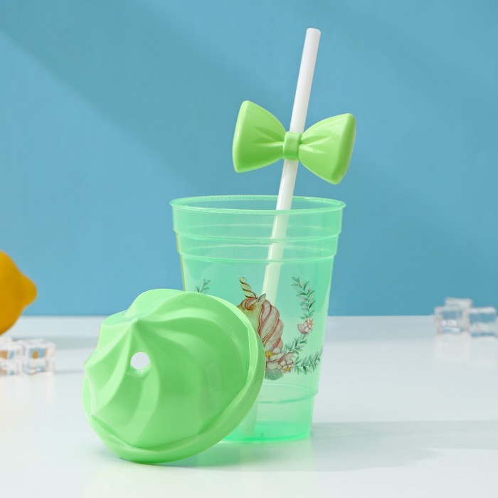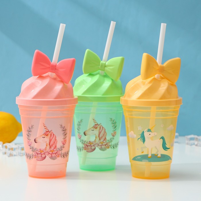 Стакан пластиковый с трубочкой и крышкой Доляна «Единорог», 400 мл, МИКС