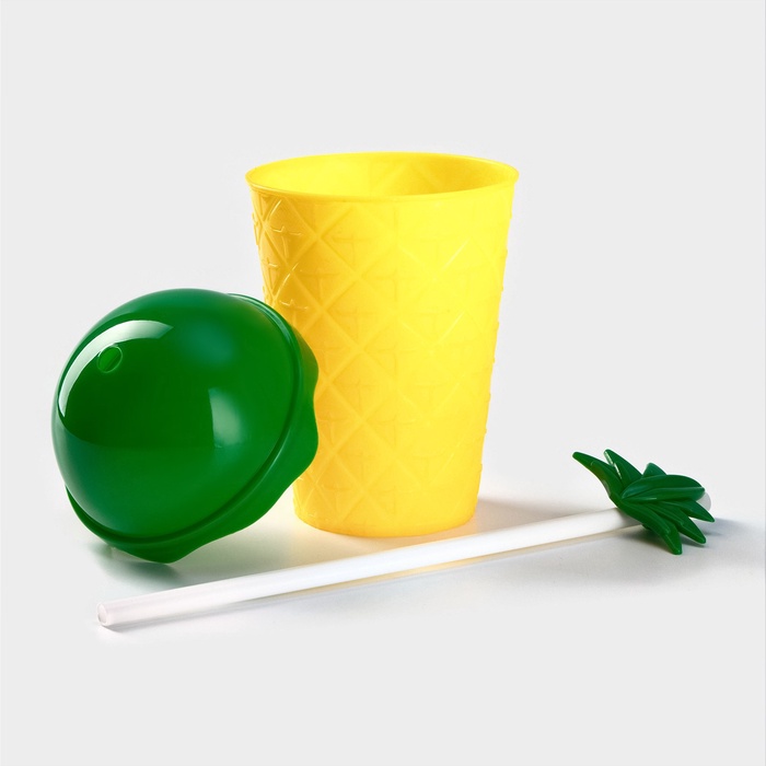 Стакан пластиковый с трубочкой и крышкой Доляна «Ананас», 450 мл, жёлтый