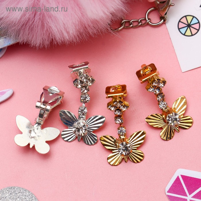 Серьги-клипсы детские «Выбражулька» принцесска, бабочки, цвет МИКС