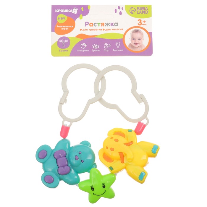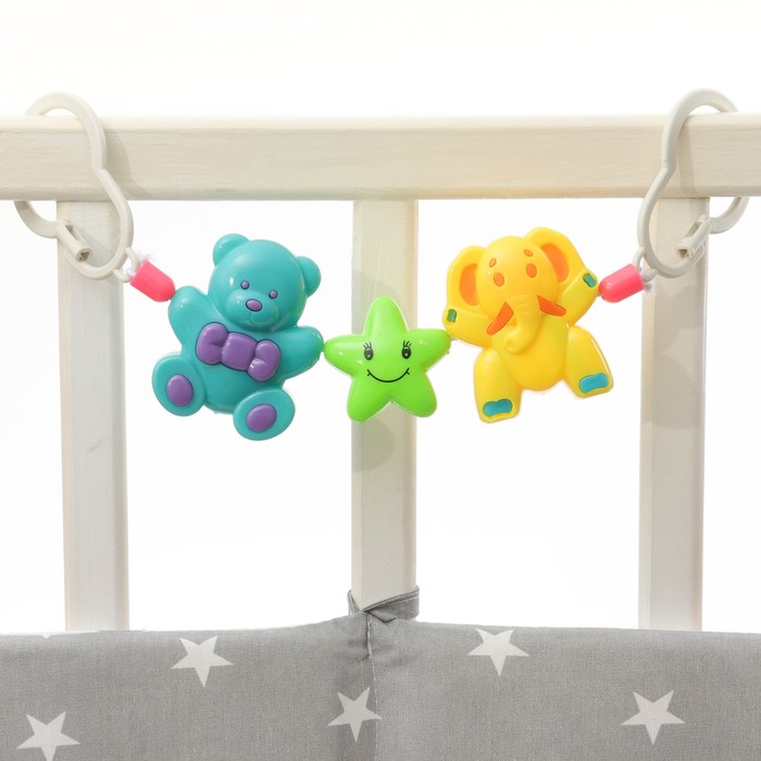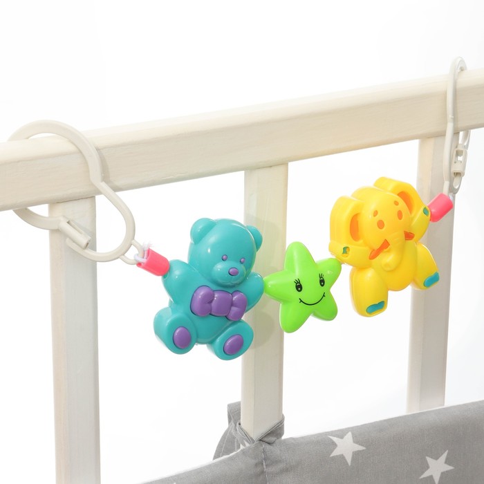 Растяжка на кроватку, коляску Крошка Я «Мишка, звезда, слоник», 3 игрушки