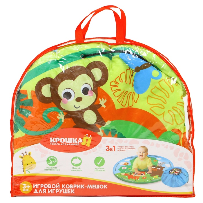 Мягкий мир для первых игр и хранения игрушек! Детский игровой коврик «Зверята» — это яркое пространство для малышей от 3 месяцев. Коврик легко превращается в удобную сумку, помогая приучать ребёнка к порядку с самого раннего возраста.