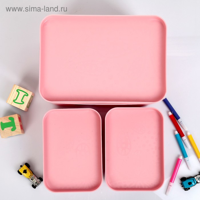 Нежно-розовый оттенок и аккуратный дизайн делают этот набор не только функциональным, но и эстетичным. Он станет украшением любой комнаты, будь то спальня, детская или ванная. С ним порядок становится простым и приятным!