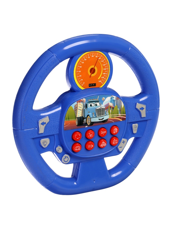 Яркий музыкальный руль – лучшая игрушка для детей, которые любят играть в водителя автомобиля. Изготовлен из прочного высококачественного пластика. Игрушка оснащена развивающими кнопками со звуковыми эффектами. В верхней части руля находится наклейка, имитирующая настоящий спидометр.