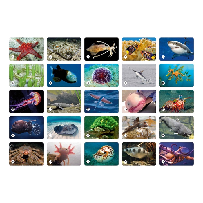 «Подводный мир» — это разновидность игр мемо. Их особенность в том, что успех зависит не от удачи, а от способностей и стараний игроков. Набор состоит из 50-ти карточек с парным изображением подводных обитателей.
