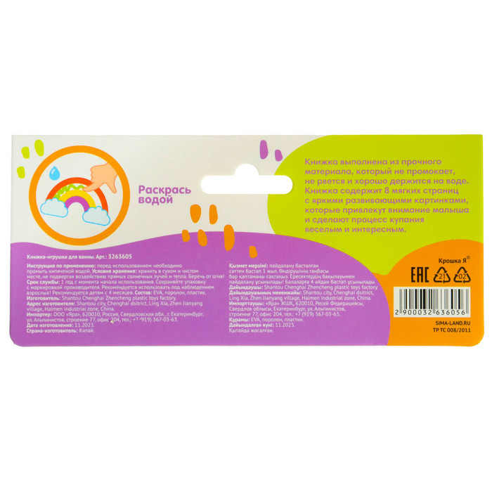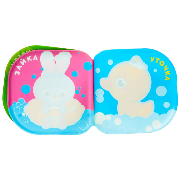 - Книжка выполнена из безопасного материала, который не разрушается под воздействием воды. Она плавает на поверхности, что делает процесс игры комфортным и безопасным для малыша.