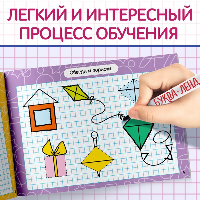 Многоразовая книжка «Пиши-стирай» — это весёлые задания, где малыш будет обводить и дорисовывать, подготавливая руку к письму. Особенность издания — глянцевые страницы. С них без труда можно стереть маркер. Именно поэтому заниматься с книжкой можно не один раз.