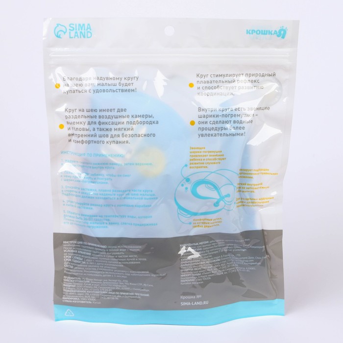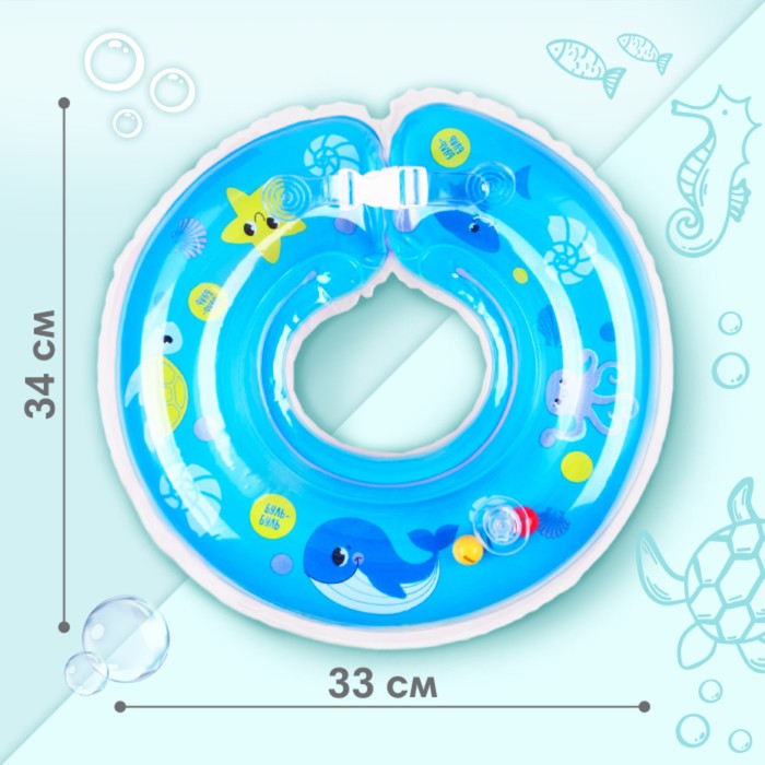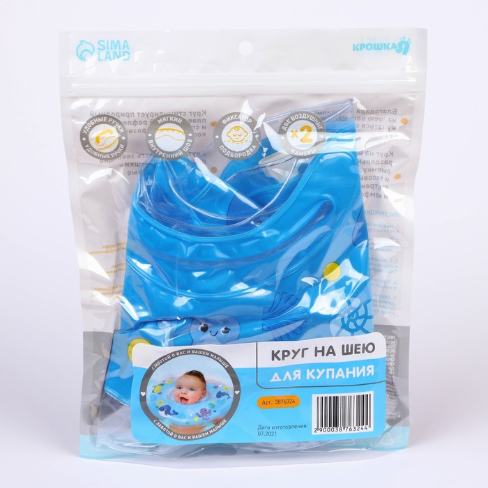 Круг для плавания новорожденных на шею Крошка Я «Море», надувной, с ручками, голубой
