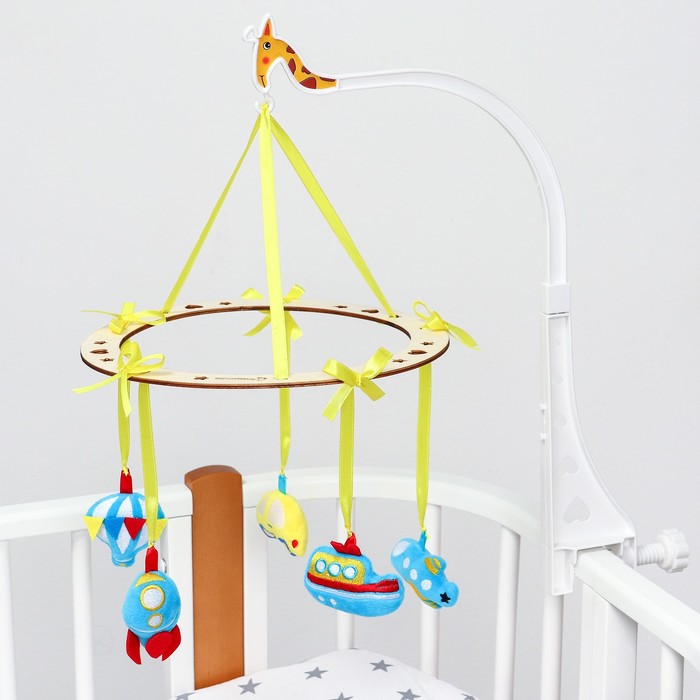 - Мобиль без мелодий, но с возможностью вращения. Это мягко привлекает внимание малыша, тренирует зрительное восприятие и концентрацию.