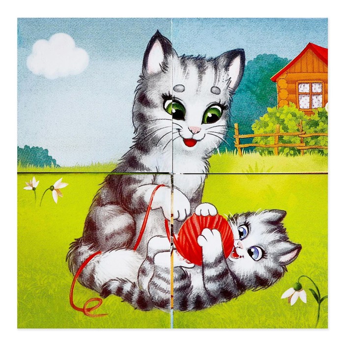 Кубики картонные «Мамы и дети», 4 шт., 3+