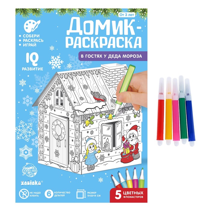 Домик-раскраска 3 в 1 «В гостях у Деда Мороза», 5 фломастеров, 6 деталей