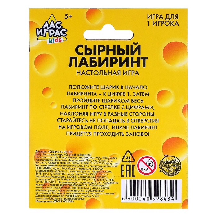 Настольная игра «Сырный лабиринт» рекомендована для детей от 3 лет. Рассчитана на 1 игрока.