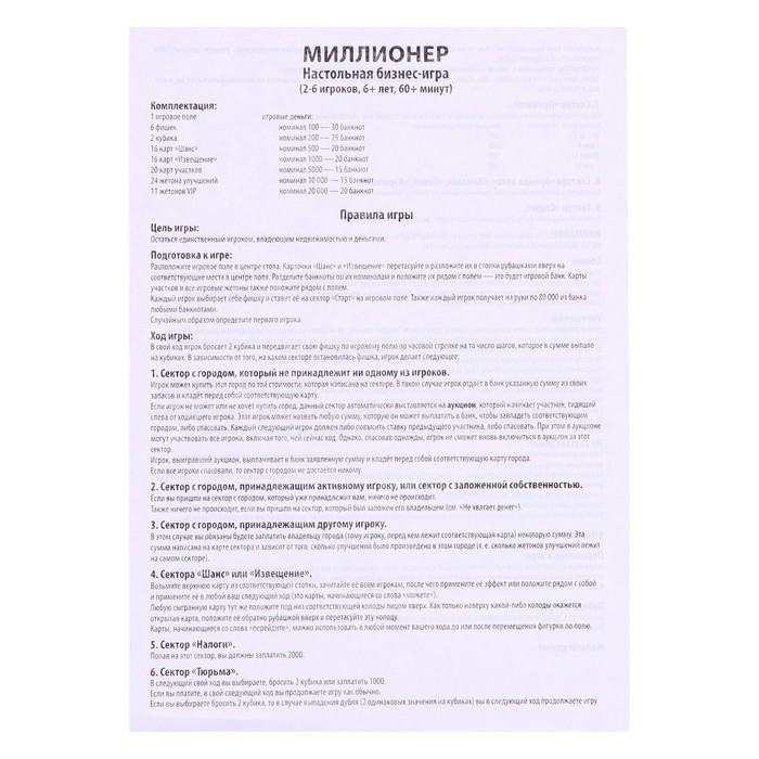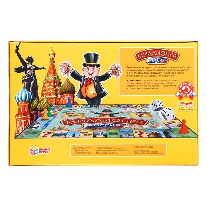 Настольная игра «Миллионер Россия» — экономическая игра-ходилка поможет преподнести ребёнку в игровой форме основы экономических знаний и познакомит с достопримечательностями России. Идеально подходит для семейного досуга, помогая детям развивать логическое мышление и навыки счёта в игровой форме.