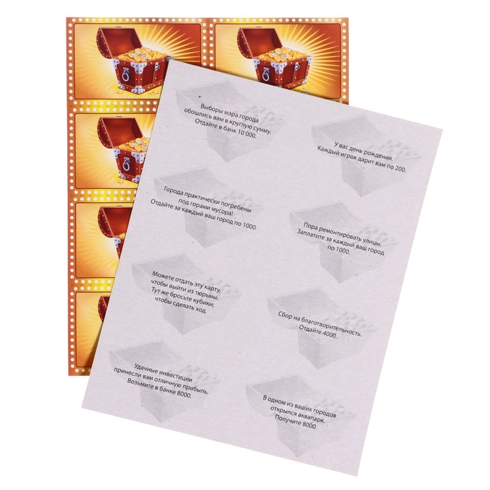 Задача каждого игрока заработать деньги и увеличить свои капитал. Для увеличения капитала игроки могут приобретать различные предприятия: банки, кинотеатры, супермаркеты, которые смогут принести им доход.
