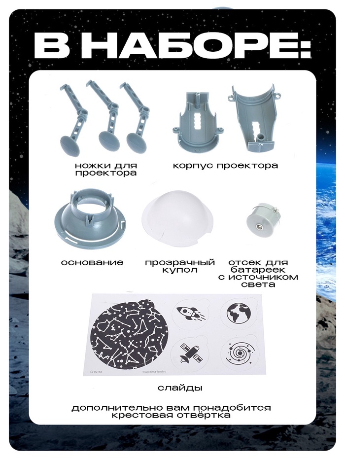 Проектор-ночник 2 в 1 «Космос» поможет ребёнку превратить свою комнату в настоящий планетарий. При сборке ночника, который выглядит как космический корабль, ребёнок поймёт принцип работы светильника.